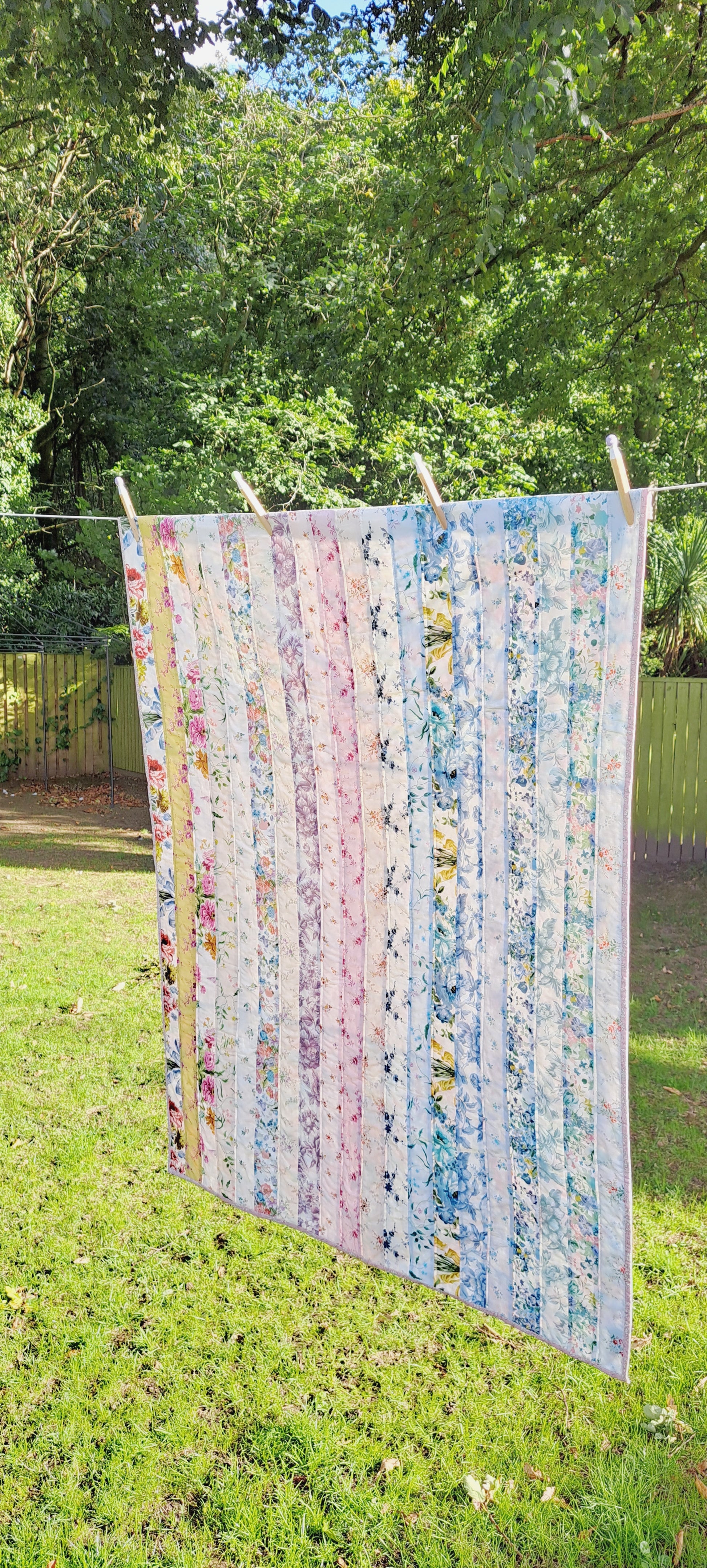 This stunning Bridgerton special edition fabric quilt in the classic Kirstykins favourite rainbow style.