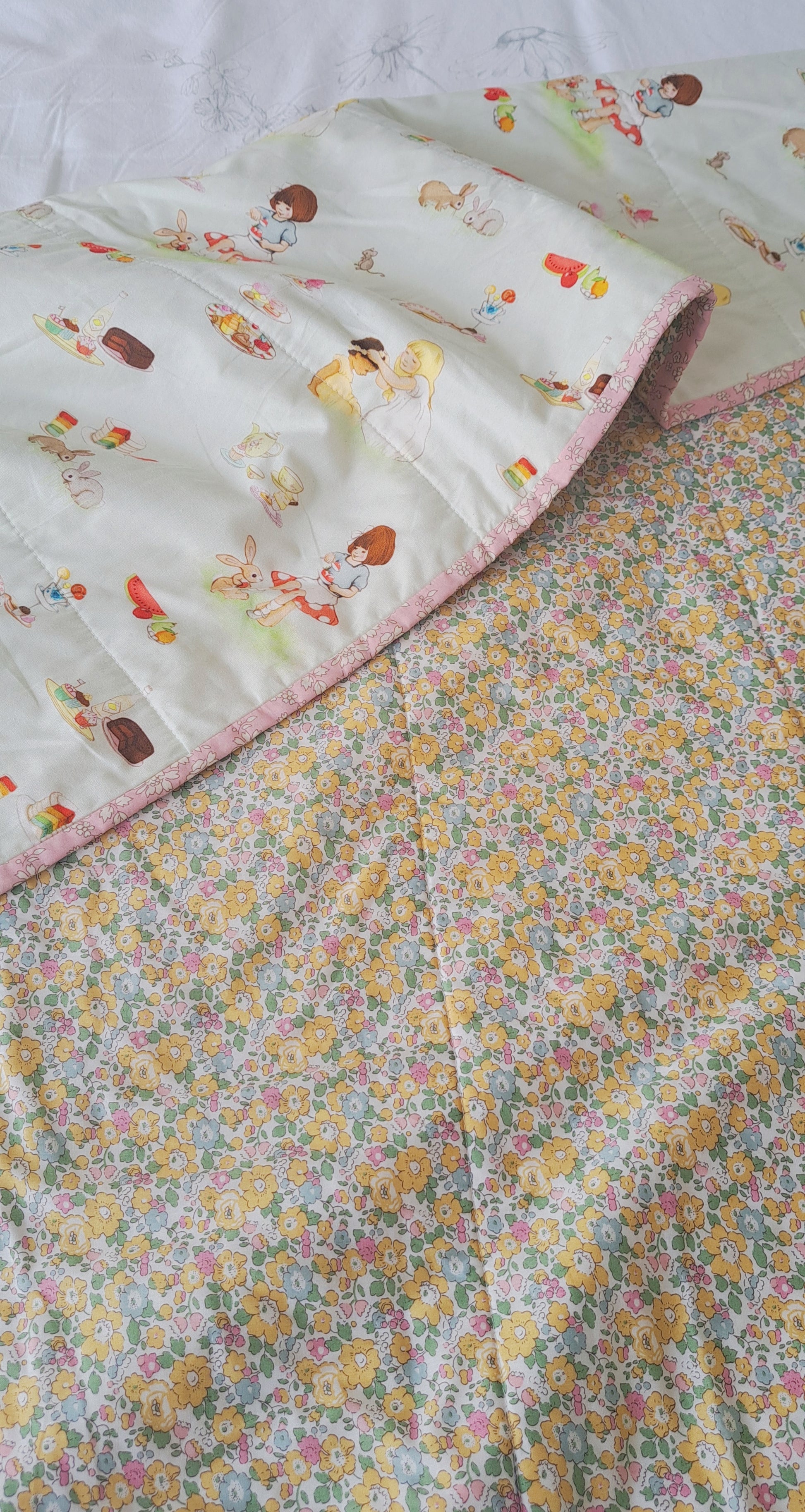 A beautiful, unique, luxurious, handcrafted Belle and Boo and Liberty Tana Lawn single bed quilt.