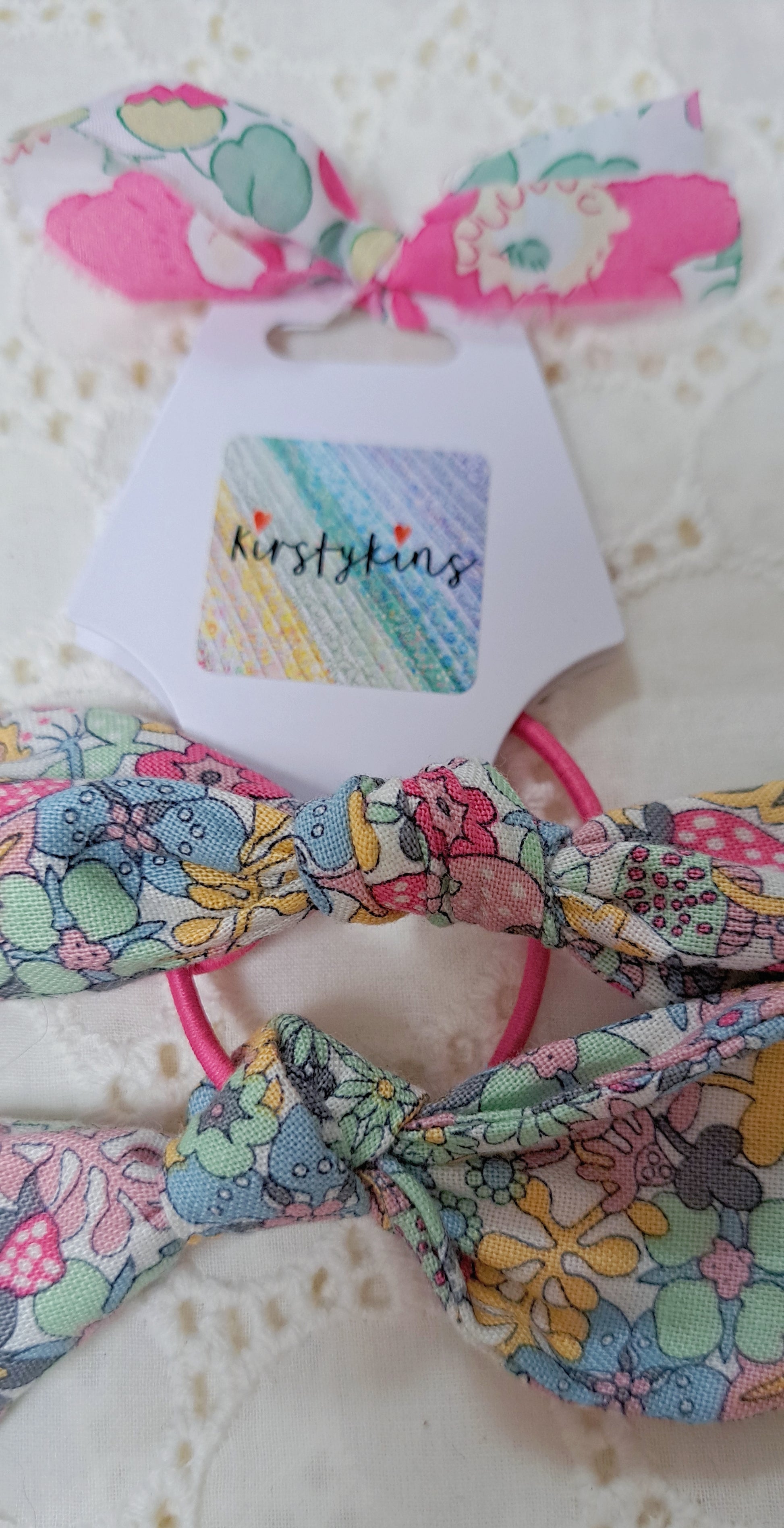 A pretty pair of handmade fabric hair bobbles.